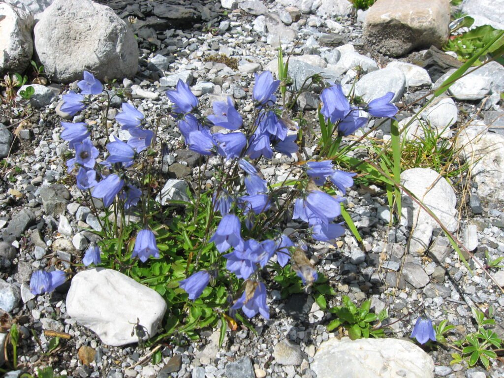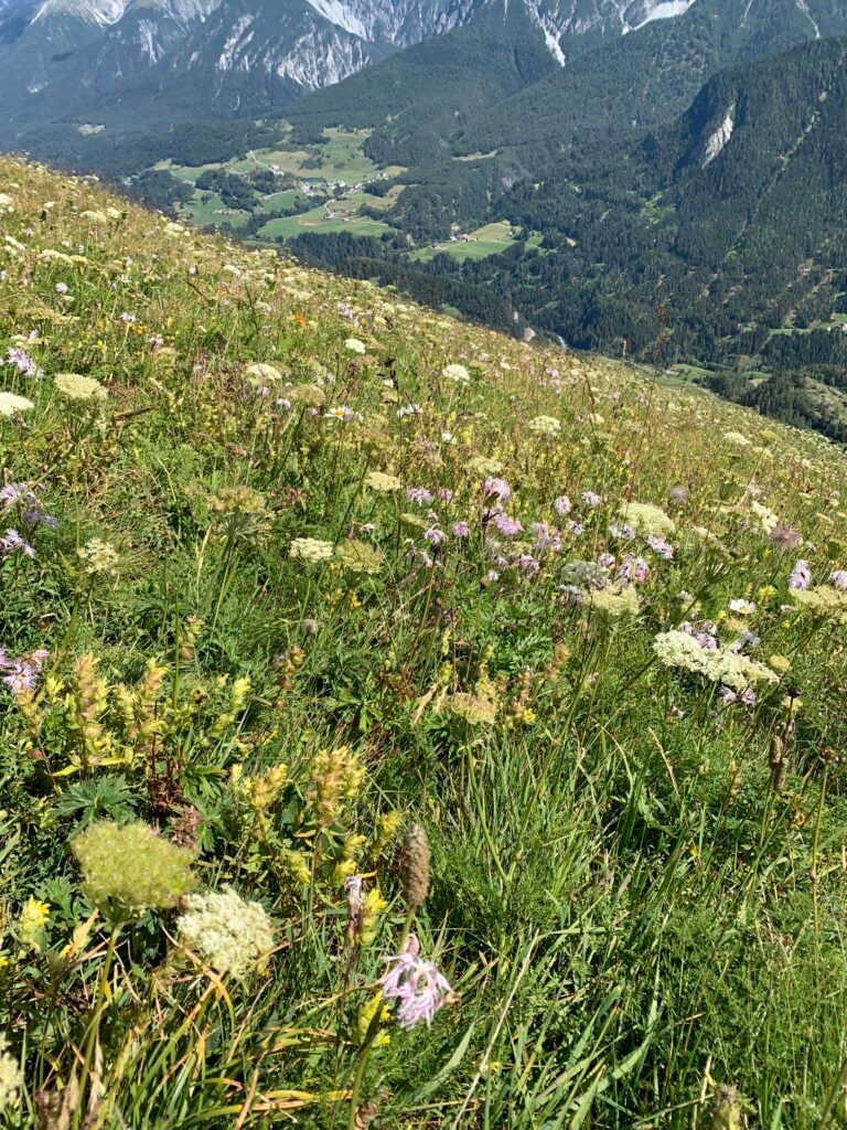 Wir sind ja nicht in den Alpen, wo auf magerstem, kalkhaltigen Boden dicht an dicht Alpenpflanzen blühen und die Gräser eher schütter dazwischen stehen